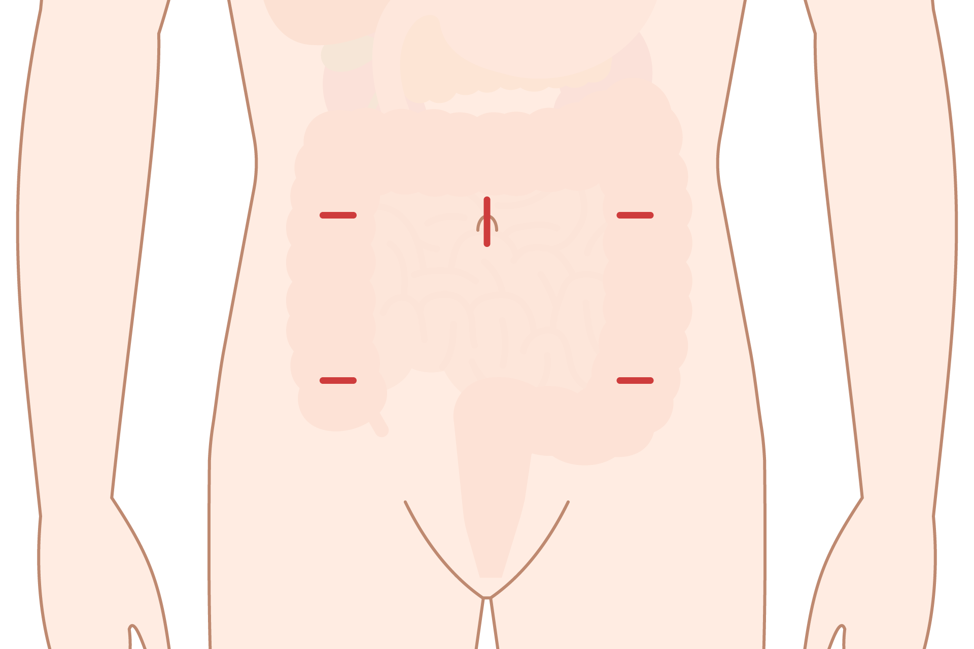 根治できるような初期の大腸がんは症状がほとんどありませんが、進行すると腸の内腔が狭くなり便秘や下痢が出現します。また、便に血液が混じる(血便)、便が細くなる、貧血、腹痛、体重が減る、お腹にしこりができるなどの症状が出現してくるようであれば要注意です。さらに進行すると、腸閉塞や腸に穴が開く消化管穿孔を引き起こし、緊急手術となることもあります。