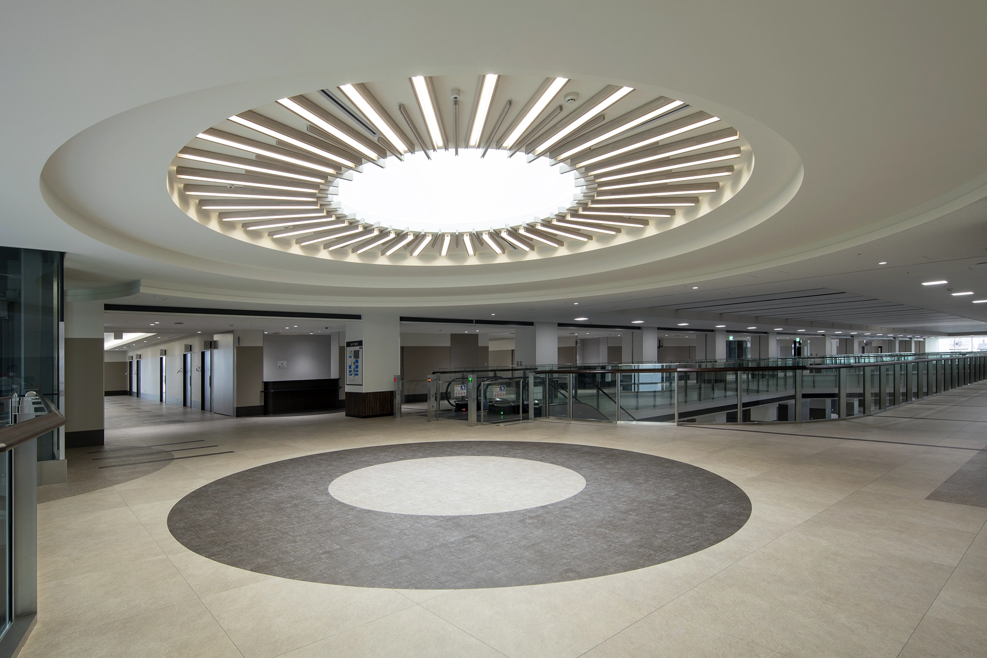 ホスピタルストリートの南側は、患者さまやご家族、来院者のみなさまがリラックスできる休憩スペースとして広く利用されています。明るく開放的なデザインが特徴で、ゆったりとしたソファや座席が配置され、落ち着いたひとときを過ごせる場所となっています。