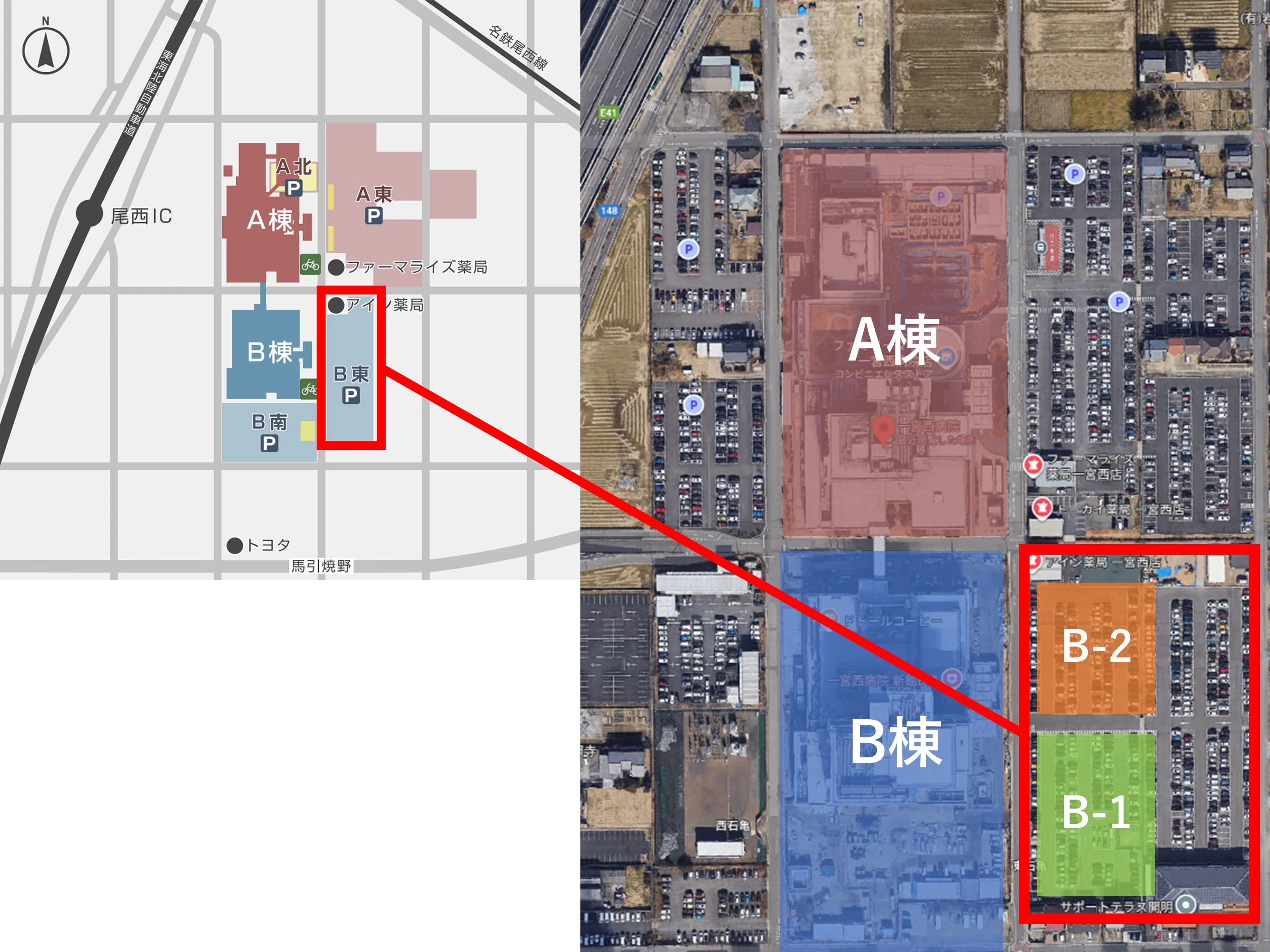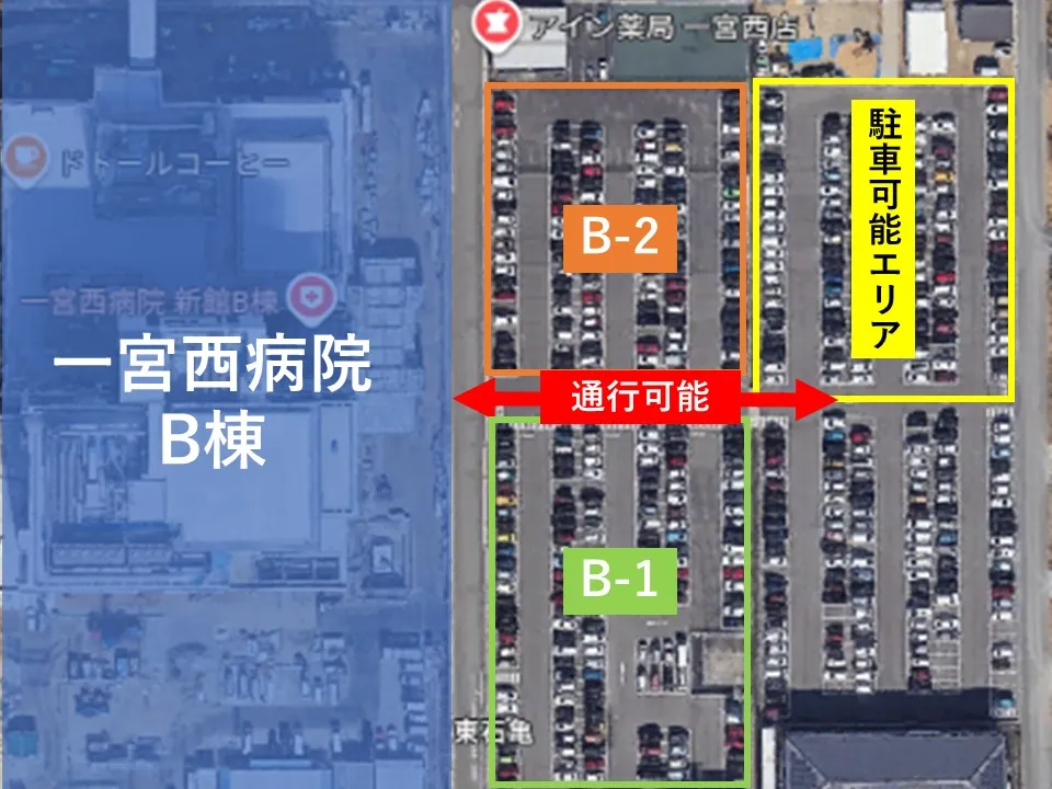 なお、工事期間中もB-1・B-2区画間の通行は可能、区画東側の駐車エリアをご利用いただけます。