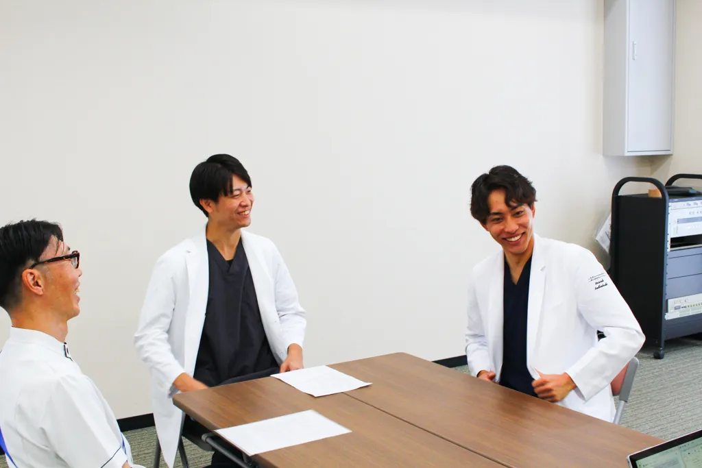 高橋先生 各専門グループが揃っていて、県内トップクラスの手術件数で症例も豊富且つ若手でもたくさん経験できる環境であることに加え、ローテーションで整形外科をまわるたびに各グループの隔たりがなく、診療科内の雰囲気もすごく良いと感じたのが決め手で、引き続き一宮西病院で専門研修をしたいと思いました! 魅力に感じている点では他にもたくさんありまして、昨年(2023年)7月に新棟が完成して、急性期だけでなく回復期も診られる病院になったのもより質の高い医療を患者さまに提供できる環境になったという点で魅力に感じたひとつです。ただ、ここに関して研修医は担当患者を持つことはないので、初期研修中に何か具体的な実体験をしたわけではなく想定しているだけだったので、相模先生に医師目線で具体的にどう良くなったのかをお聞きしたいです!