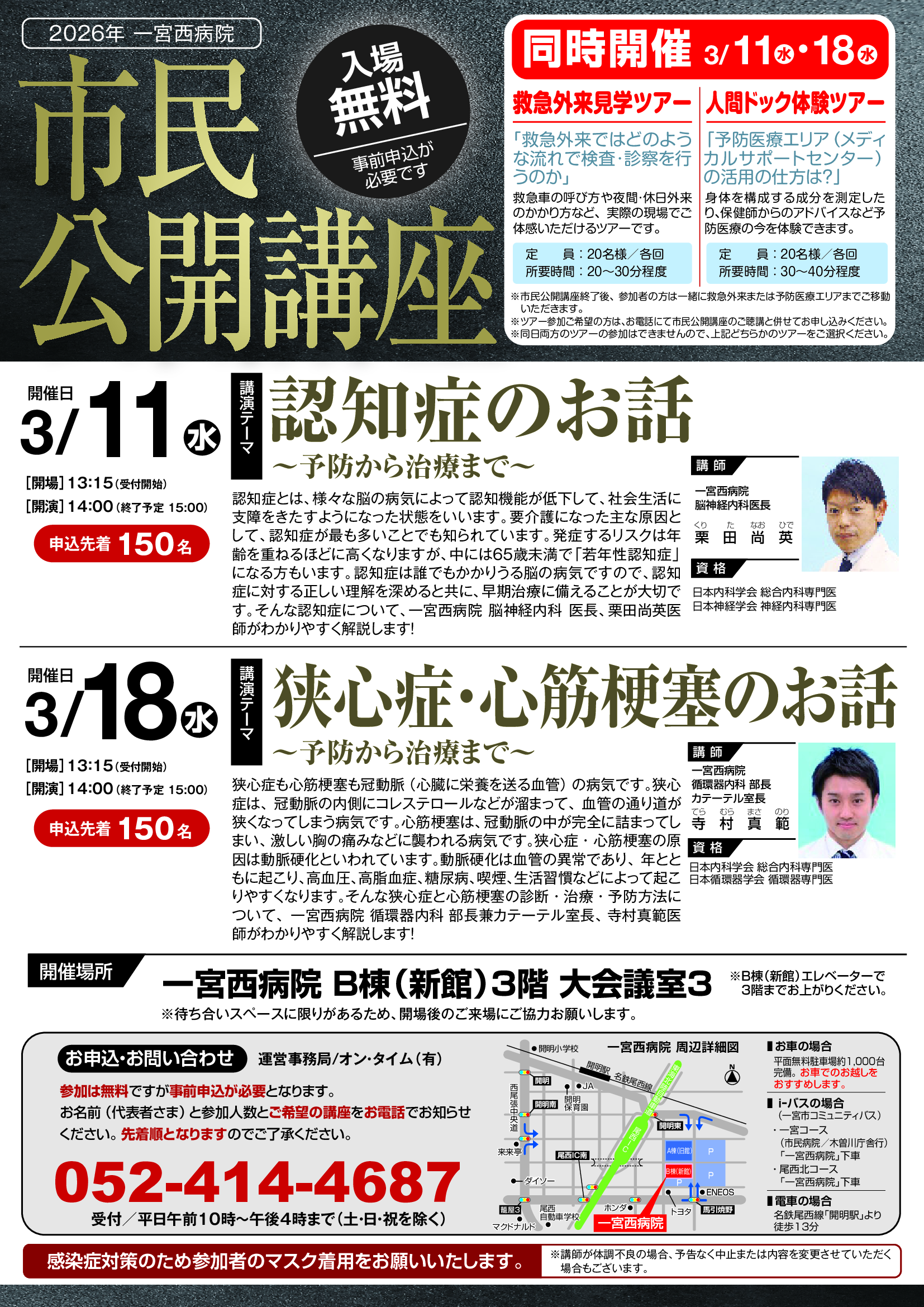 ※ツアー参加ご希望の方は、お電話にて市民公開講座のご聴講と併せてお申し込みください。