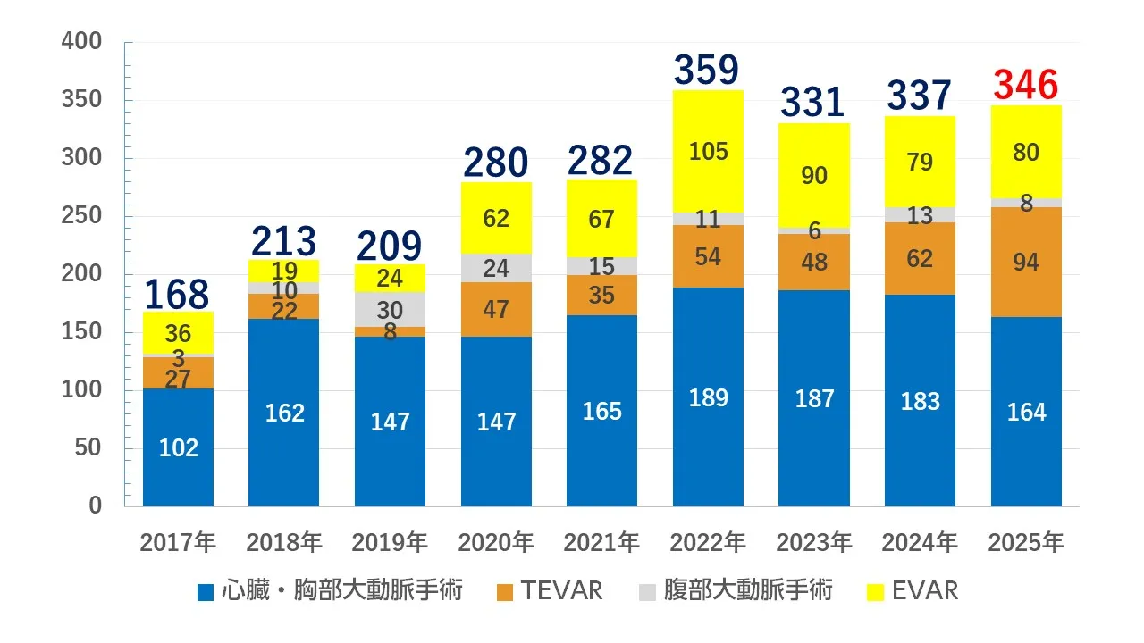 | 心臓・大血管合計 | 168 | 213 | 209 | 280 | 282 | 359 | 331 | 337 | 346 | |