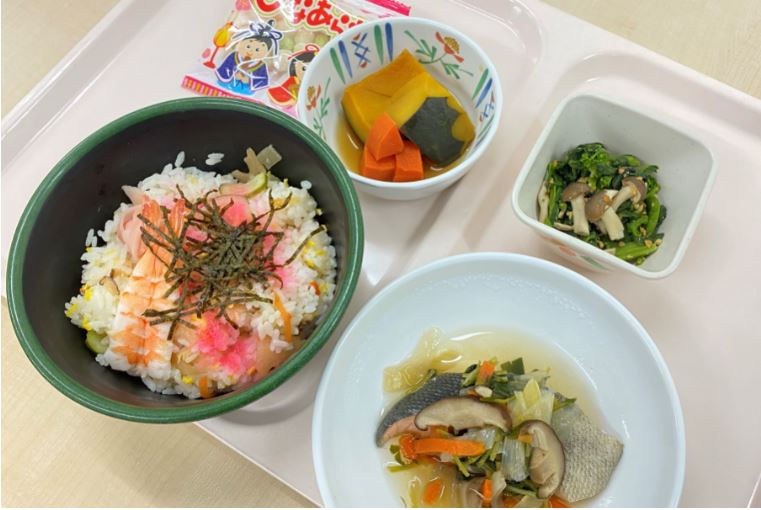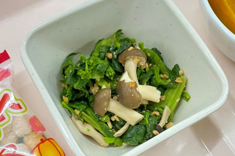 今回の旬メニューは春に旬を迎える、わかめ・鰆(サワラ)・菜の花・キウイを献立に取り入れています。春の食材は、寒い冬に弱った身体の調子を整えるビタミン・ミネラルが豊富で、代謝促進・疲労回復に効果的です!栄養満点の旬の食材を食べて、元気に春を迎えましょう♪