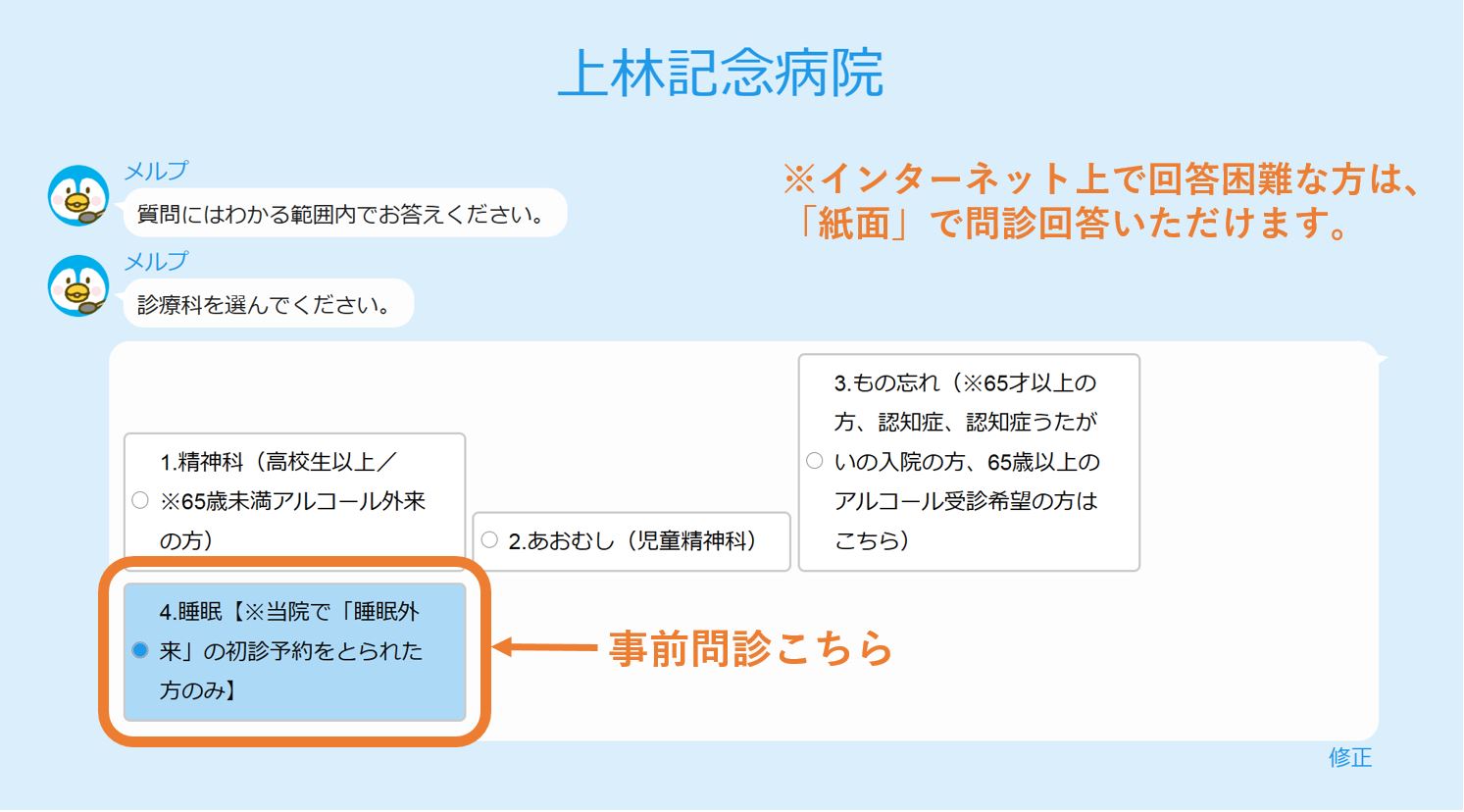 ※問診はホームページ上にはございません。
