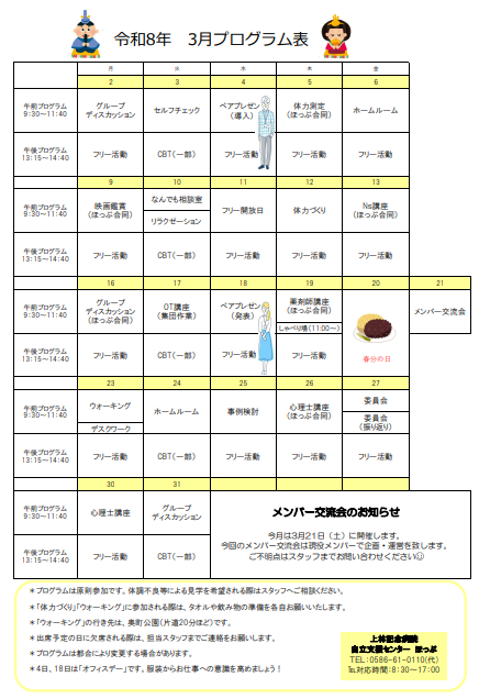 ホーム >  病院からのお知らせ >  3月21日 メンバー交流会開催のお知らせ