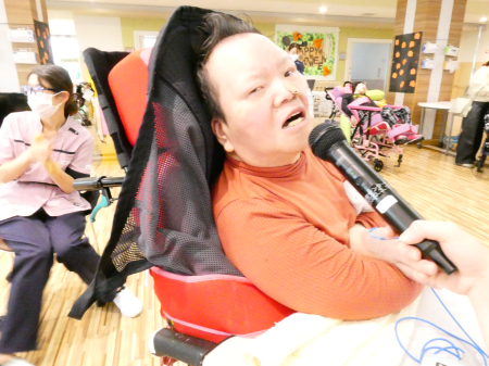 【活動】日中活動でカラオケをしました。自分の好きな歌をうれしそうな表情で歌っていました。歌うことで元気がでてきたようで、笑顔がたくさんみられましたよ。