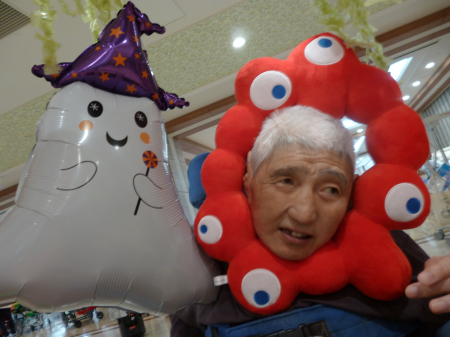 【行事】11月行事はハロウィン! 皆様思い思いの仮装をして素敵な写真を撮りました。今年は会場にゾンビやミャクミャクも登場してダンスを披露。少し怖がっている方もみえましたが、笑顔が多く見られて楽しい時間を一緒に過ごすことができました。